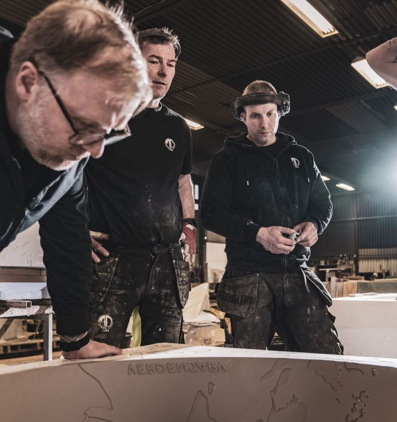 Vi bruker en type fiberbetong som kalles GRC eller GFRC– Glassfiber Reinforced Concrete.