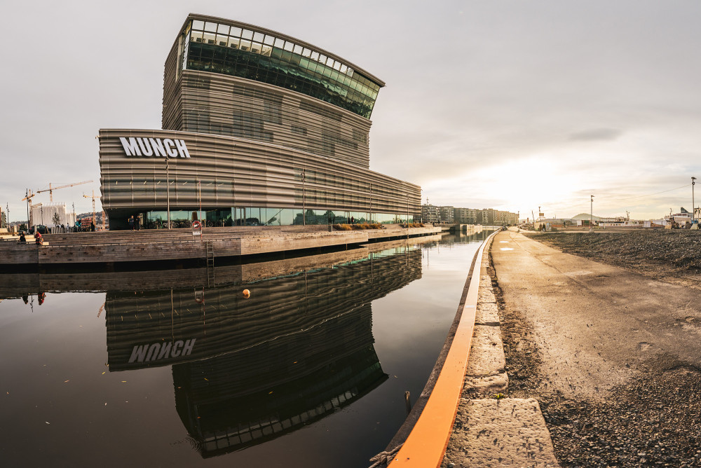 Bak den perforerte fasaden på det nye Munchmuseet i Bjørvika skjuler det seg en stor trapp, konstruert i stål, som går i byggets fulle høyde. Vi har produsert og levert alle repos og trappetrinn i slipt og polert betong for denne trappen.