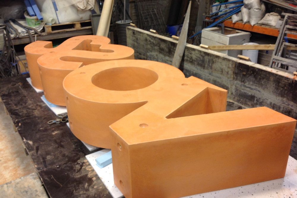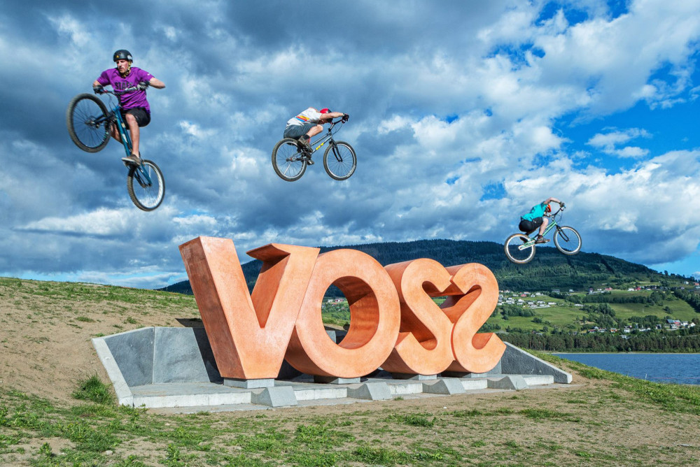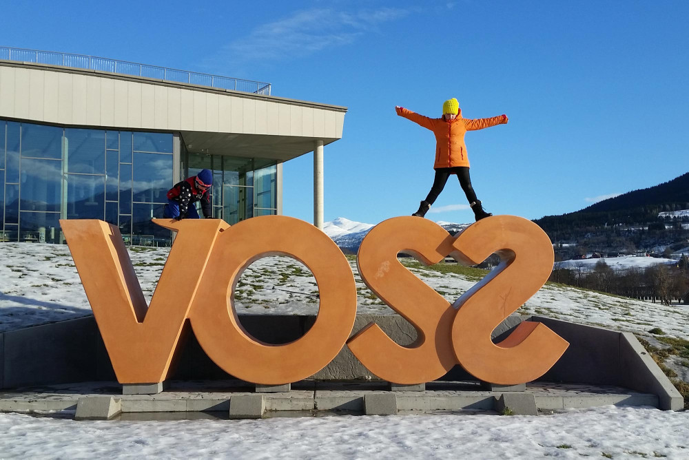 Man konkluderte med at denne var litt “pinglete”, så en ny større variant ble bestilt. Denne er plassert nedenfor Voss Kulturhus ved Vangsvannet. Disse elementene er produsert i hvit betong med oransje pigment.